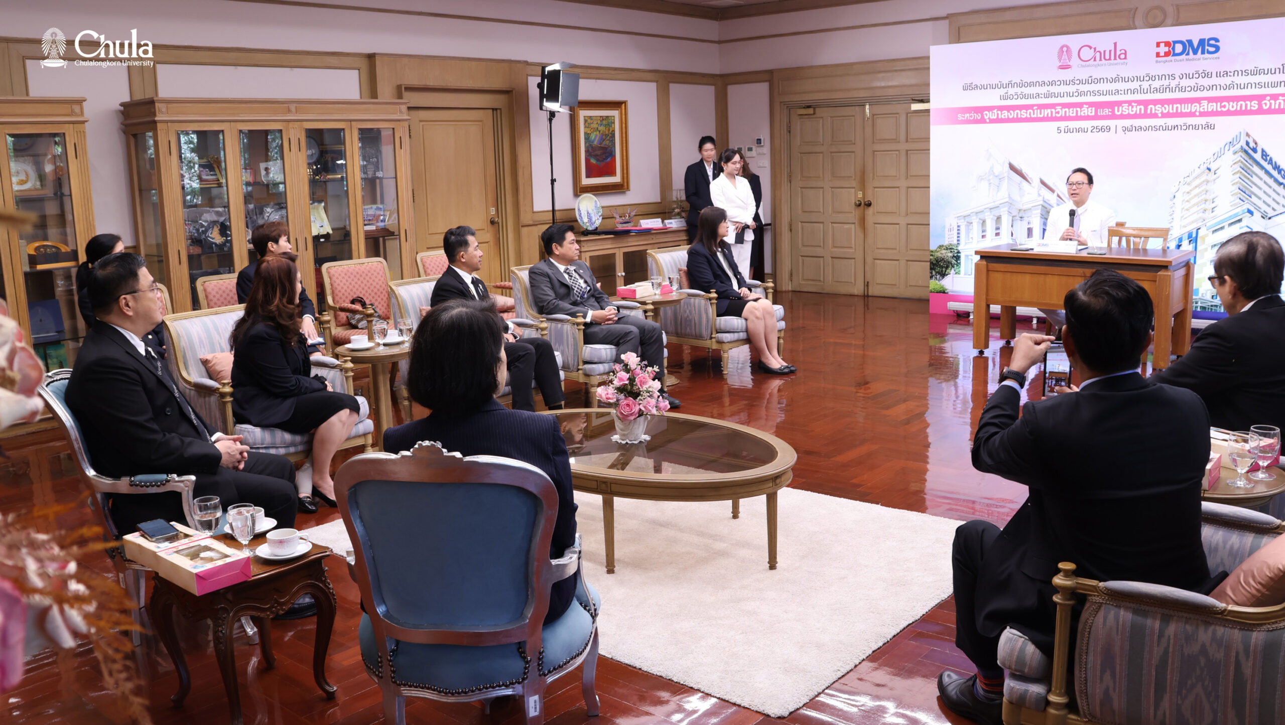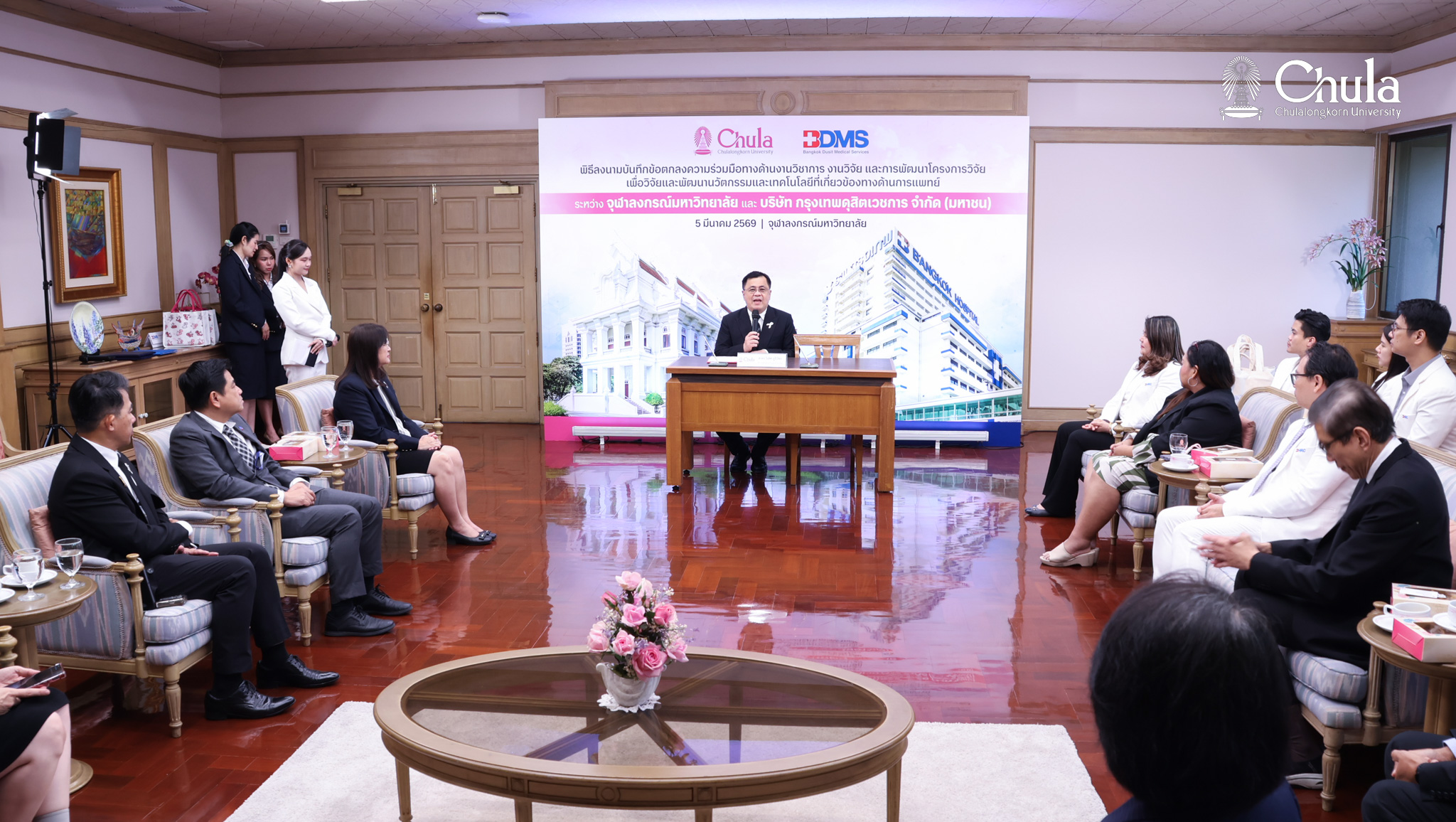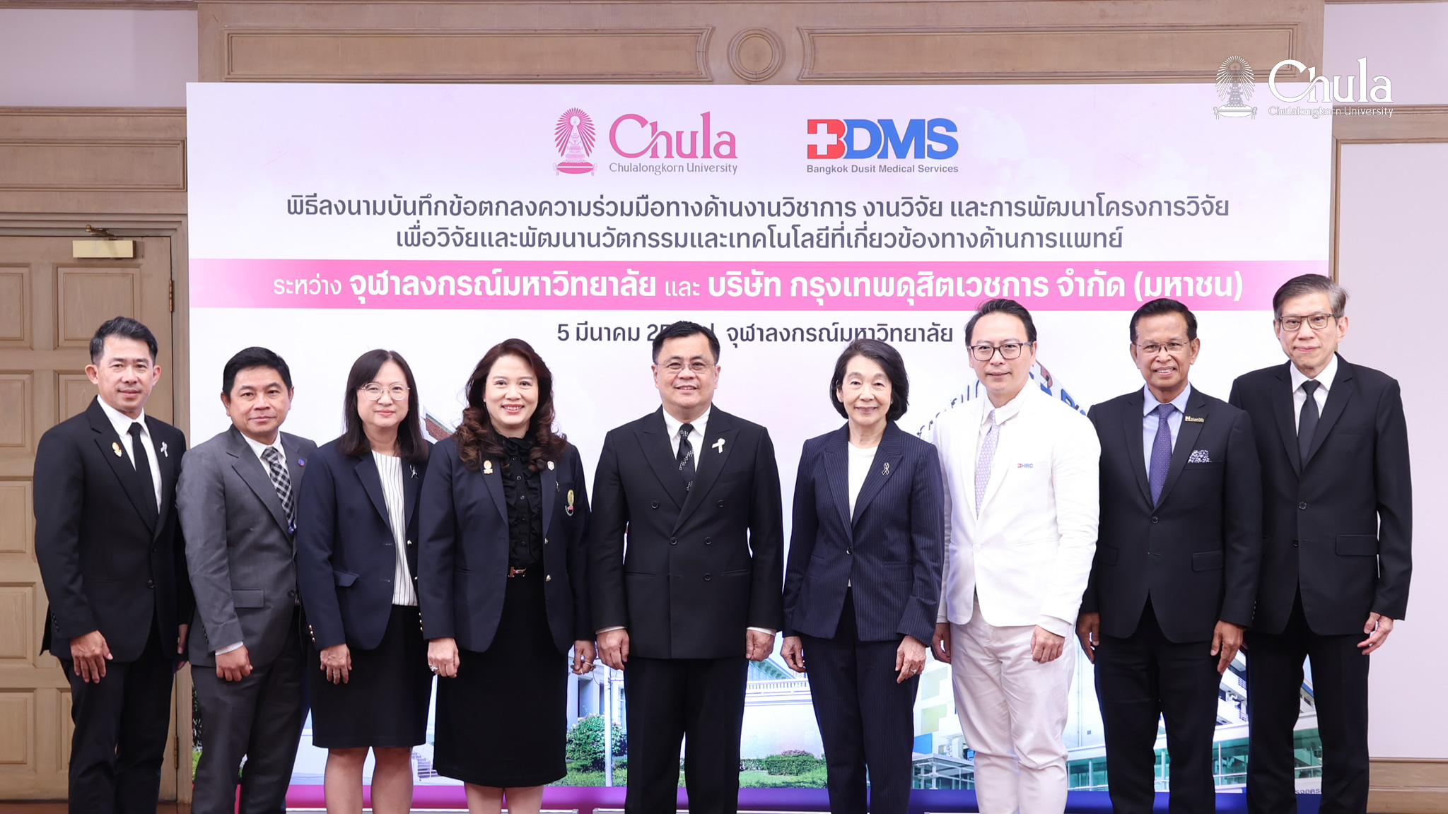 เมื่อเวลา 10.00 น. ของวันที่ 5 มีนาคม 2569 จุฬาลงกรณ์มหาวิทยาลัย และบริษัท กรุงเทพดุสิตเวชการ จำกัด (มหาชน) จัดพิธีลงนามความร่วมมือทางด้านวิชาการ งานวิจัย และการพัฒนาโครงการวิจัยเพื่อวิจัยและพัฒนานวัตกรรมและเทคโนโลยีที่เกี่ยวข้องทางด้านการแพทย์ ณ ห้องรับรอง ชั้น 2 อาคารจามจุรี 4 จุฬาลงกรณ์มหาวิทยาลัย เพื่อบูรณาการความรู้ระหว่างสถาบันการศึกษาและภาคเอกชน