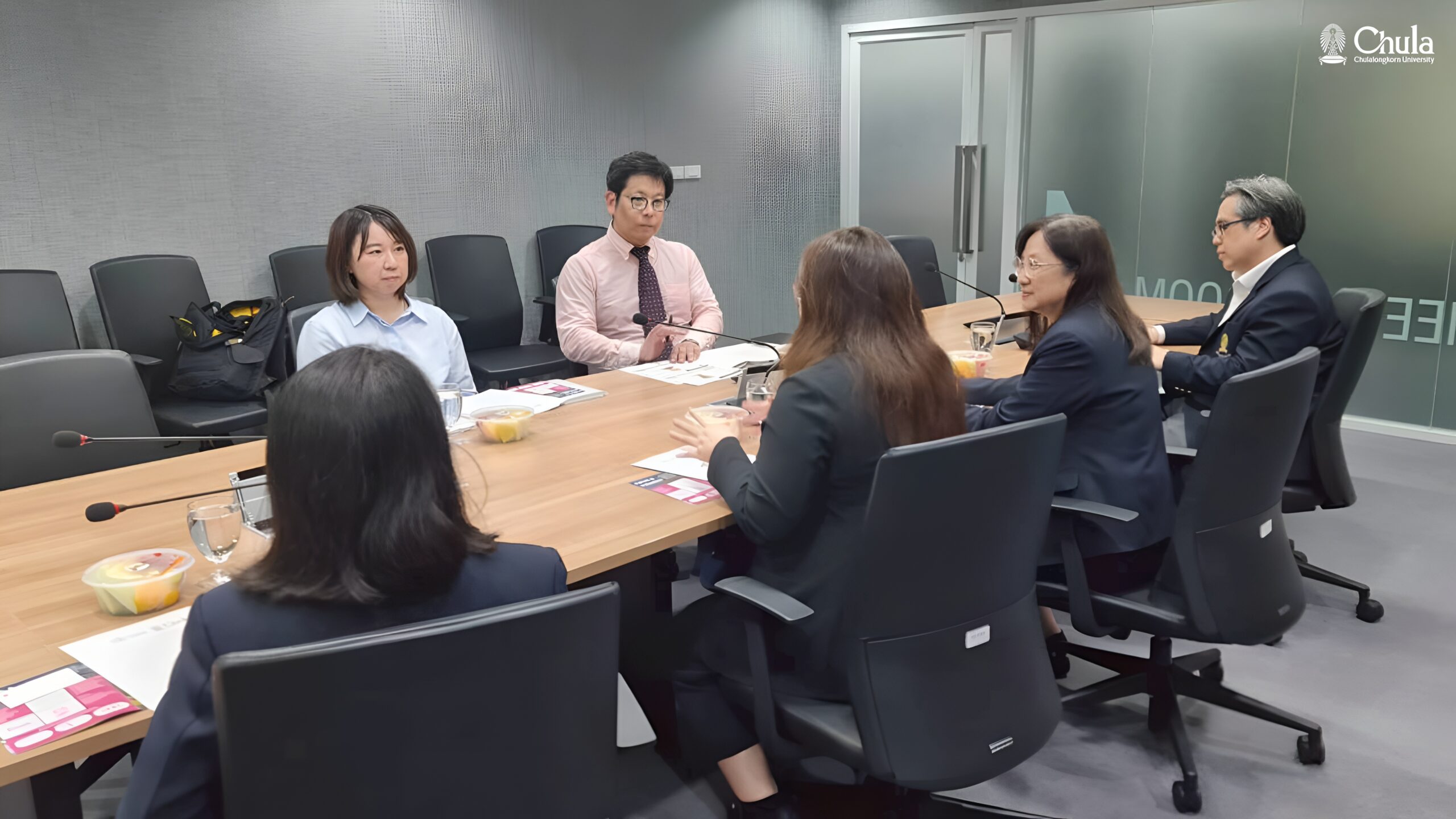 รองศาสตราจารย์ ดร.พรรณี ชีวินศิริวัฒน์ ผู้ช่วยอธิการบดี ด้านวิจัย นำทีมอาจารย์และนักวิจัยจากจุฬาลงกรณ์มหาวิทยาลัย ประกอบด้วย รองศาสตราจารย์ ดร.สุธี อนันต์สุขสมศรี รองคณบดีคณะสถาปัตยกรรมศาสตร์ ผู้ช่วยศาสตราจารย์ ดร.มธุริน ลีละเศรษฐกุล ผู้ช่วยคณบดีคณะอักษรศาสตร์ ดร.พุทธพร อารีประชากุล อาจารย์ประจำคณะอักษรศาสตร์ และบุคลากรจากกลุ่มยุทธศาสตร์การวิจัย สำนักบริหารวิจัย ให้การต้อนรับ Associate Professor Dr. Soichiro SHIRAISHI และ Ms. Fumi KASAI ผู้แทนจากคณะมนุษยศาสตร์และสังคมศาสตร์ มหาวิทยาลัยฮิโรซากิ (Hirosaki University) ซึ่งการประชุมครั้งนี้มุ่งเน้นการหารือความเป็นไปได้ในการจัดทำบันทึกข้อตกลงความร่วมมือ (MoU) ในสาขาสังคมศาสตร์และมนุษยศาสตร์ ครอบคลุมทั้งความร่วมมือด้านการวิจัยของอาจารย์ และการแลกเปลี่ยนนิสิตระหว่างสองสถาบัน โดยมีการนำเสนอข้อมูลจากคณะอักษรศาสตร์ คณะสถาปัตยกรรมศาสตร์ และการแลกเปลี่ยนแนวทางความร่วมมือทางวิชาการในสาขาที่เกี่ยวข้อง พร้อมทั้งร่วมกันหารือแนวทางการพัฒนาโครงการในอนาคต