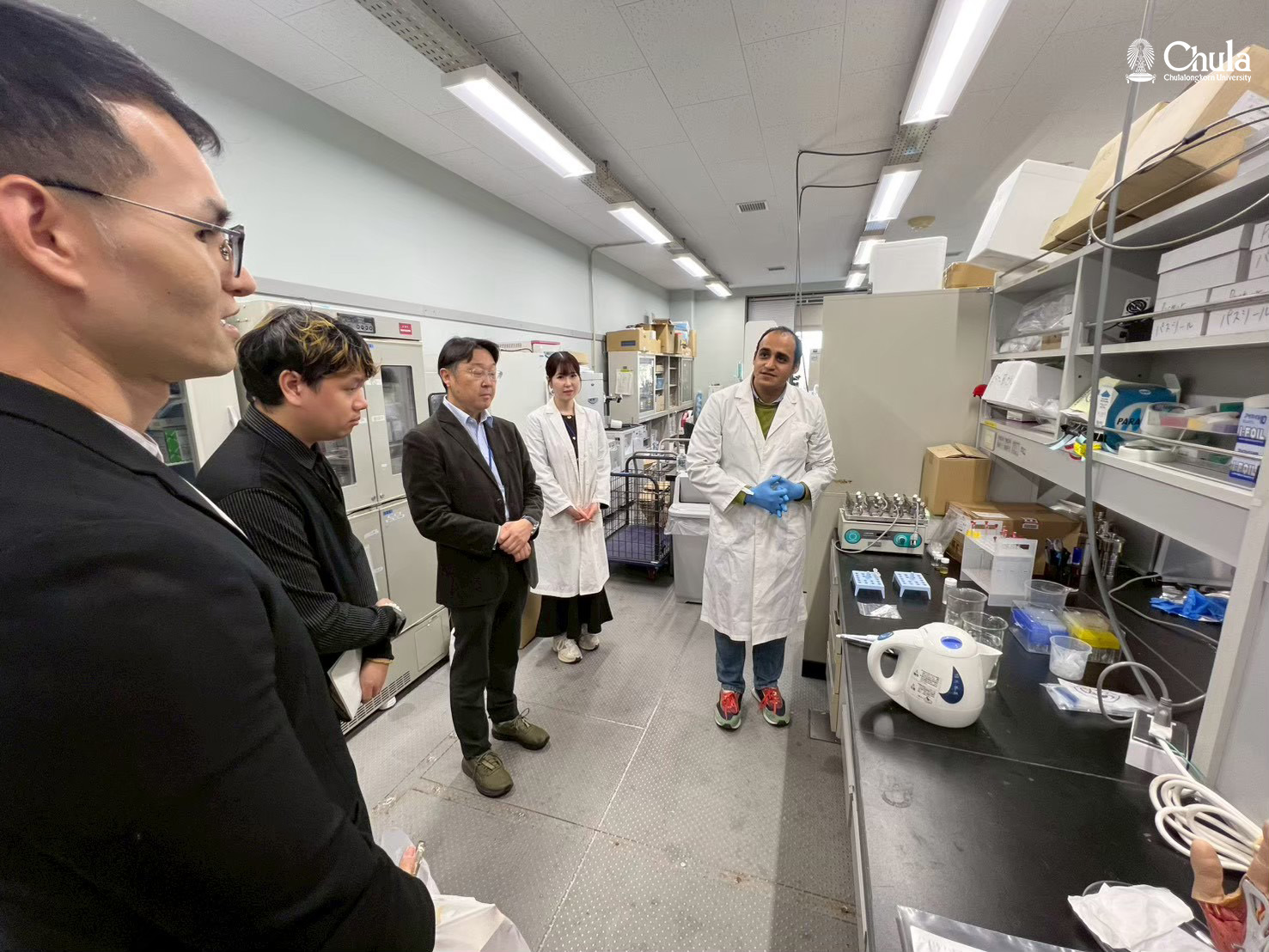 Professor Dr. Takao Mori, Special Assistant to the President of the Division of International Collaborations and Public Relations, Deputy Director and Group Leader, Thermal Energy Materials Group, Nanomaterials Field และ Professor Dr. Mitsuhiro Ebara, Deputy Director and Group Leader, Smart Polymers Group, Biomaterials Field จาก National Institute for Materials Science (NIMS) ให้การต้อนรับตัวแทนคณะผู้บริหารจากคณะวิศวกรรมศาสตร์ คณะเภสัชศาสตร์ และกลุ่มยุทธศาสตร์วิจัย สำนักบริหารวิจัย เพื่อหารือข้อตกลงการแลกเปลี่ยนนิสิตปริญญาเอกเพื่อเข้าร่วมโครงการฝึกงาน ‘NIMS internship program’ และนำปสู่การแลกเปลี่ยนนิสิตปริญญาโท คณาจารย์ รวมถึงการแสวงหาแหล่งทุนภายนอกเพื่องานวิจัยและการจัดอบรมเพื่อเผยแพร่องค์ความรู้ในอนาคต