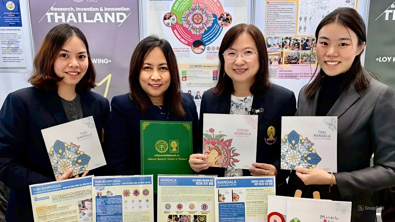 - ผู้ช่วยศาสตราจารย์ ดร.อินทิรา พรมพันธุ์ เเละคณะ จากคณะครุศาสตร์ ผลงานเรื่อง “Mindful Circle Mandala: Creative Mandala Art Kits for Better Living Across All Ages แมนดาลาวงกลมสติ: ชุดสร้างสรรค์ศิลปะแมนดาลาเพื่อสุขภาวะที่ดีสำหรับทุกวัย เพื่อพัฒนานวัตกรรมการเรียนรู้ผ่านกิจกรรมศิลปะในรูปแบบผลิตภัณฑ์ชุดการเรียนรู้สร้างสรรค์ โดยใช้หลักการแมนดาลาเป็นหลักในการออกแบบเกิดสุขภาวะที่ดี บำบัดภาวะความเครียด วิตกกังวล ส่งเสริมความสัมพันธ์ของมนุษย์ สร้างความสงบสุขให้แก่จิตใจ รวมไปถึงสร้างความสุนทรียะในการสร้างสรรค์งานศิลปะ โดยได้รับรางวัล Special Award for Innovation from King Abdulaziz University และ NRCT Honorable Mention Award เป็นผลงานจากงานวิจัยและนวัตกรรมที่ได้รับทุนจาก CU Social Innovation Hub