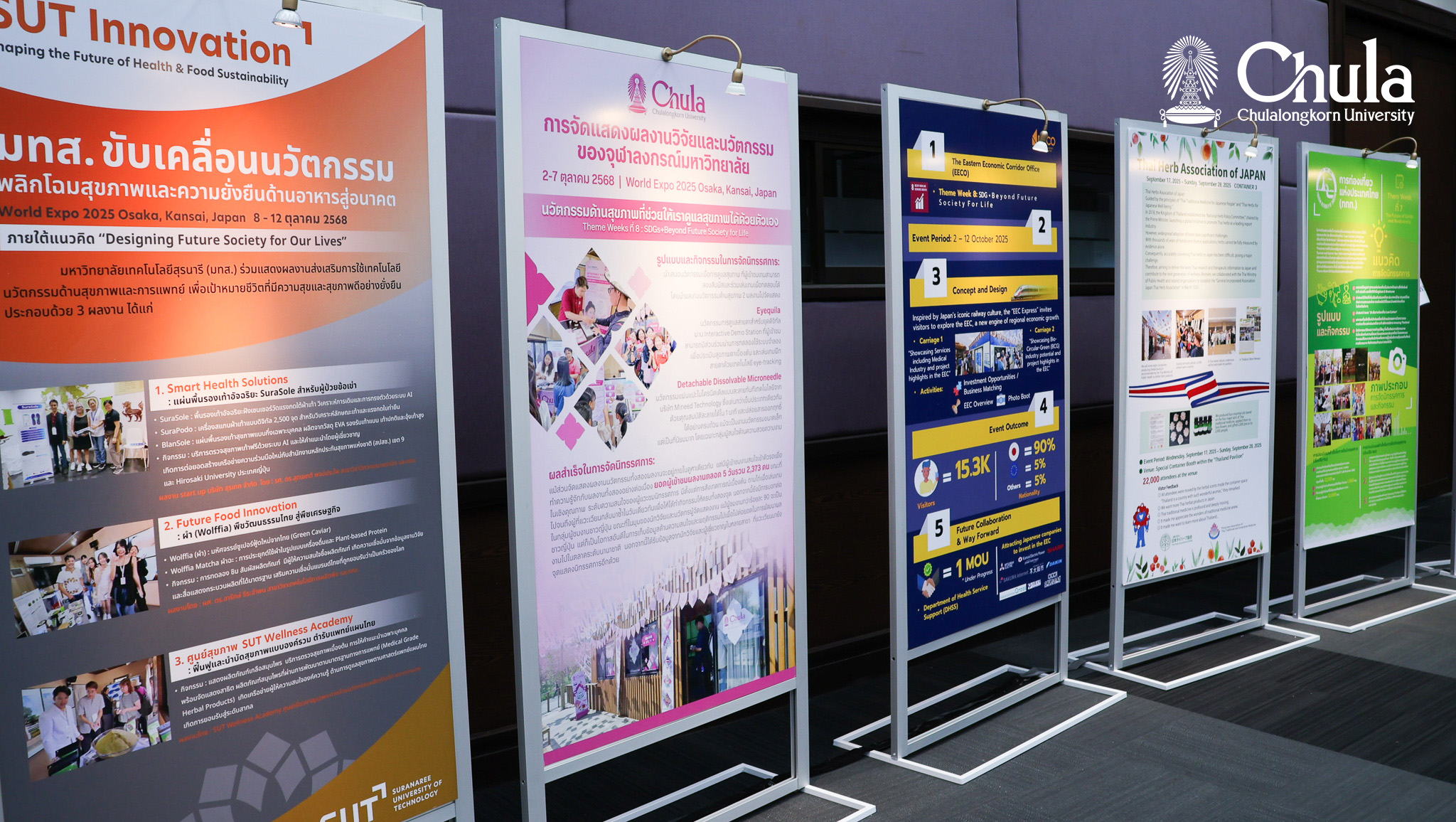 รองศาสตราจารย์ ดร.พรรณี ชีวินศิริวัฒน์ ผู้ช่วยอธิการบดี ด้านวิจัย เป็นตัวแทนจุฬาลงกรณ์มหาวิทยาลัย ในการรับโล่ประกาศเกียรติคุณจากนายแพทย์สุระ วิเศษศักดิ์ ที่ปรึกษาการจัดอาคารนิทรรศการไทย (Thailand Pavilion) กรมสนับสนุนบริการสุขภาพ พร้อมกับ 51 หน่วยงานเครือข่ายที่ร่วมจัดนิทรรศการไทย ภายใต้แนวคิดที่ผสมผสานนวัตกรรมทางการแพทย์เข้ากับภูมิปัญญาและศิลปวัฒนธรรมไทย ในงาน Expo 2025 Osaka, Kansai นครโอซากา ประเทศญี่ปุ่น โดยจุฬาลงกรณ์มหาวิทยาลัย ได้นำเสนอผลงานระหว่างวันที่ 2-7 ตุลาคม 2568 ได้แก่ นวัตกรรมแผ่นแปะไมโครนีดเดิลแบบละลายทันที (Detachable Dissolvable Microneedle) และ Eyequila นวัตกรรมการดูแลสายตาสำหรับยุคดิจิทัล ซึ่งได้รับเสียงตอบรับที่ดีจากผู้เข้าชมงานเป็นจำนวนมาก
