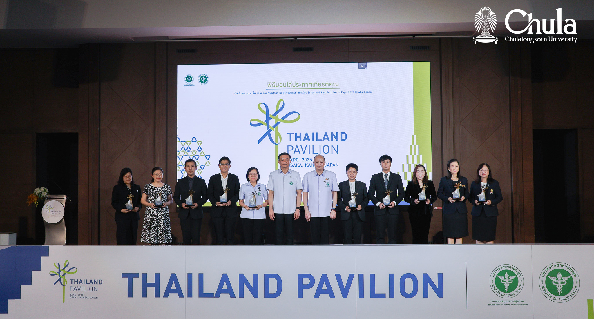 วันที่ 26 มีนาคม 2569 จุฬาลงกรณ์มหาวิทยาลัย รับโล่ประกาศเกียรติคุณในฐานะหน่วยงานภาคีเครือข่ายที่ร่วมจัดนิทรรศการไทย (Thailand Pavilion) ในงาน Expo 2025 Osaka, Kansai ประเทศญี่ปุ่น เพื่อเผยแพร่ศักยภาพด้านการแพทย์ สาธารณสุข และศิลปวัฒนธรรมไทยสู่ประชาคมโลก ณ ห้องสัมพุทธเมตตาประชารักษ์ ชั้น 9 อาคารกรมสนับสนุนบริการสุขภาพ