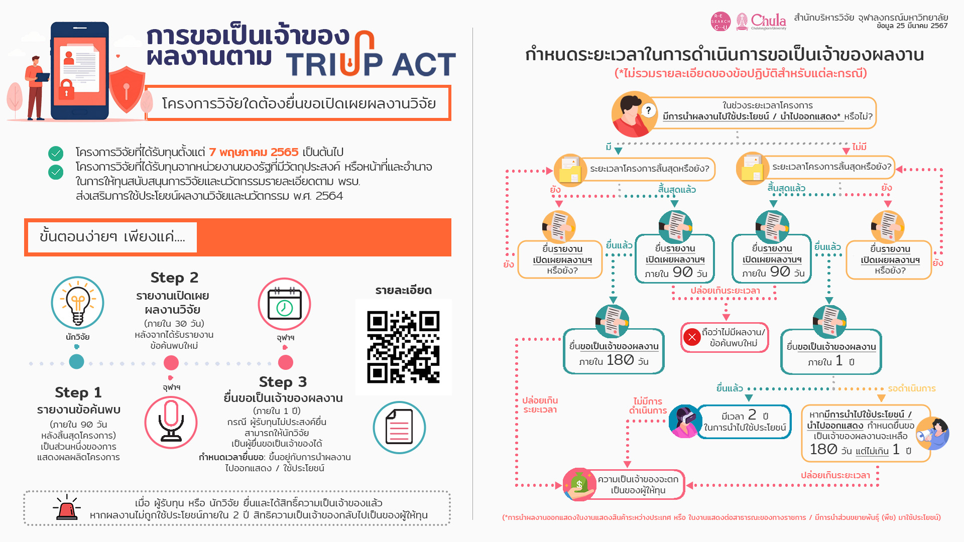- สถาบันวิจัย มหาวิทยาลัย และนักวิจัยสามารถเป็นเจ้าของผลงานวิจัยและนวัตกรรมได้