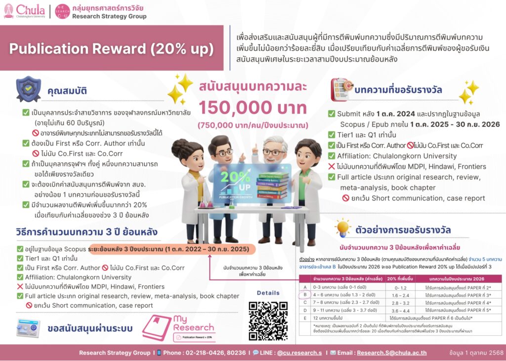 ทุนสนับสนุนรางวัลการตีพิมพ์ผลงานวิชาการ ในระดับนานาชาติ (20% up)