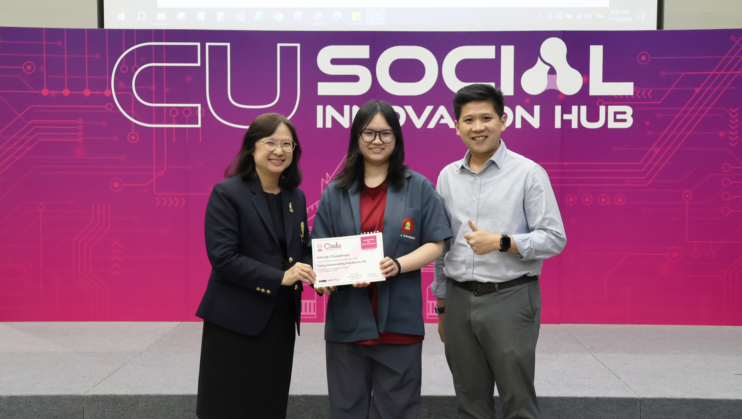 ศูนย์กลางนวัตกรรมทางสังคมแห่งจุฬาลงกรณ์มหาวิทยาลัย (CU Social Innovation Hub) จัดกิจกรรมนำเสนอผลงานโมเดลนวัตกรรมทางธุรกิจเพื่อสังคมของกลุ่มนิสิต “YOUNG SUSTAINABILITY PRACTITIONER” รุ่นที่ 5 พร้อมมอบเกียรติบัตรแก่นิสิตที่ผ่านการอบรม ในวันที่ 12 พฤศจิกายน 2568 ณ CU Social Innovation Hub ณ อาคารวิศิษฐ์ ประจวบเหมาะ จุฬาลงกรณ์มหาวิทยาลัย