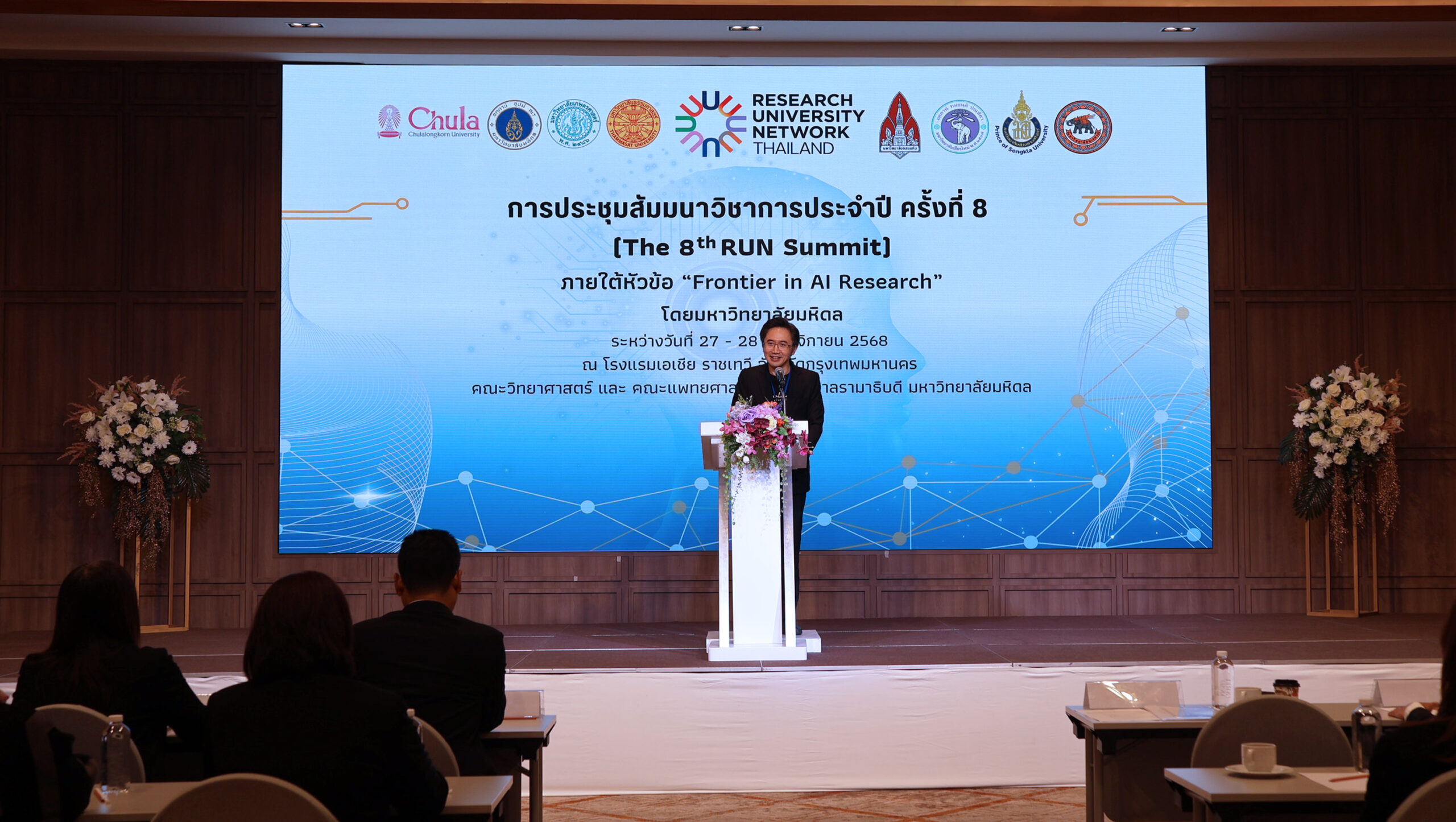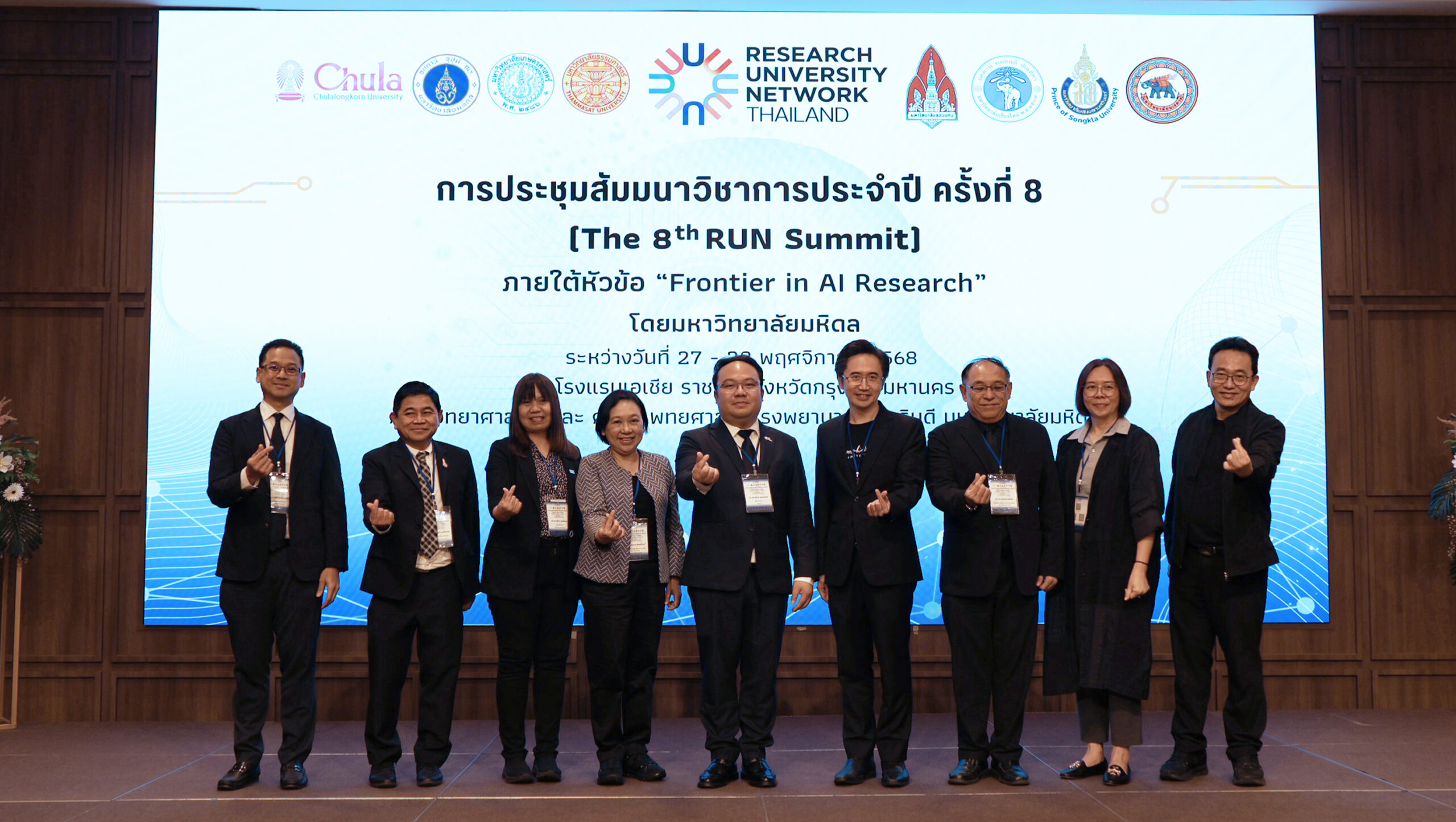เมื่อเวลา 13.00 น. วันที่ 27 พฤศจิกายน 2568 จุฬาลงกรณ์มหาวิทยาลัยร่วมการประชุมสัมมนาวิชาการประจำปี ครั้งที่ 8 (The 8th RUN Summit) ร่วมกับมหาวิทยาลัยในเครือข่ายพันธมิตรมหาวิทยาลัยเพื่อการวิจัย ภายใต้หัวข้อ “Frontier in AI Research” เพื่อเตรียมความพร้อมโครงการวิจัยในการขอรับการสนับสนุนจากแหล่งทุนด้านงานวิจัย ณ ห้องราชเทวี 2 โรงแรมเอเชีย กรุงเทพฯ